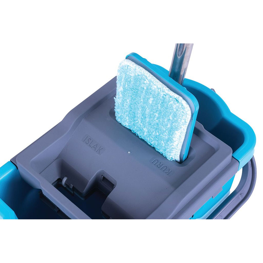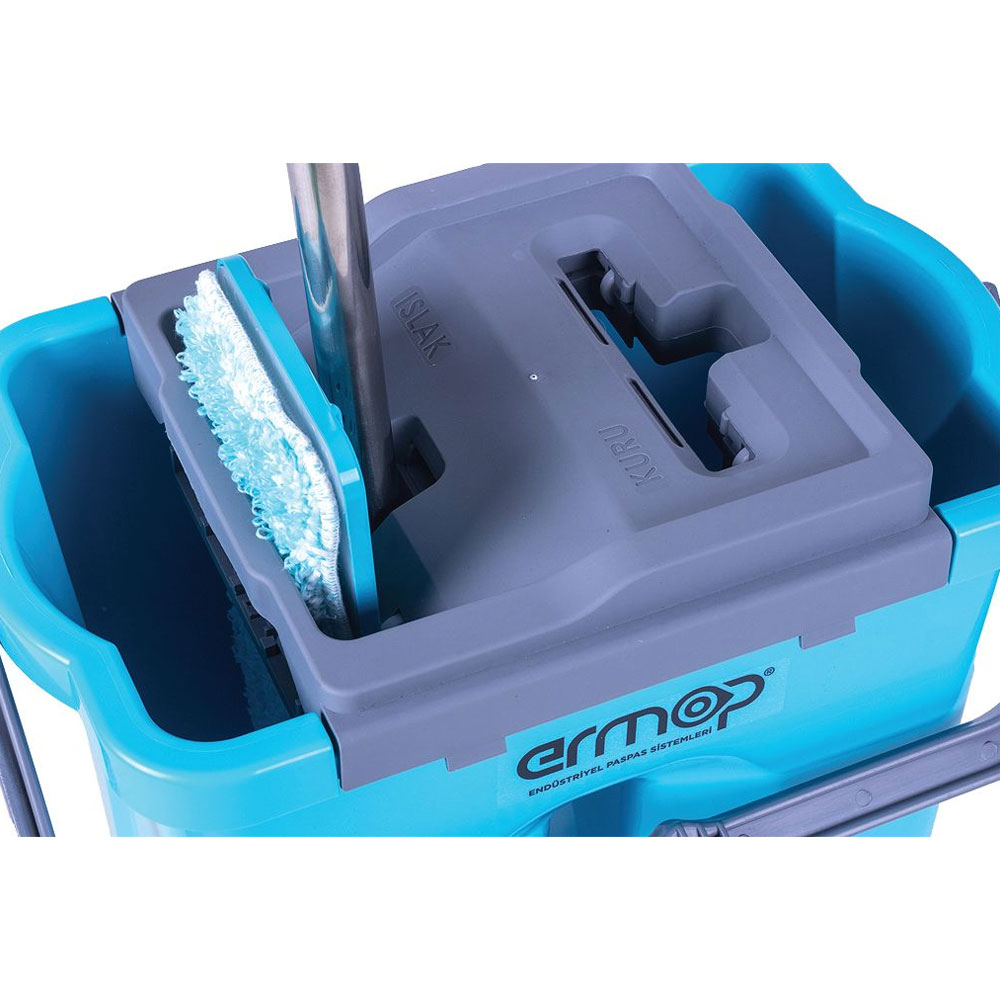- Στην μία θέση του κάδου βάζουμε το νερό με το απορρυπαντικό και στην άλλη θέση στραγγίζουμε και καθαρίζουμε την πανέτα