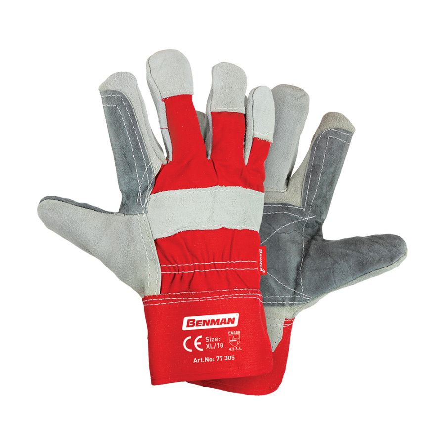 ΓΑΝΤΙΑ ΔΕΡΜΑΤΟΠΑΝΙΝΑ ΜΕ ΕΝΙΣΧΥΣΗ ΒΑΡΕΟΣ ΤΥΠΟΥ 77305 Με παλάμη από κρούτα μόσχου. Πίσω μέρος γαντιού & μανσέτα από βαμβακερό ύφασμα. Διαθέτει διπλές ραφές. Διατίθεται σε μέγεθος XL 10"